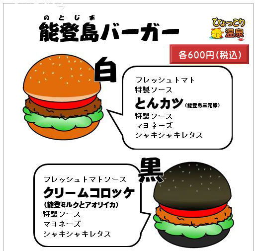 能登島バーガーの記事(外部サイト)能登島バーガー - ロケットニュース24西日本ハンバーガー協会ブログ 能登島バーガー あすかりんの恋味敬食(こみにけいしょく) 能登ふぐ入!真っ黒パンズの「能登島バーガー」 ミーハー女子が選ぶ!中部エリアに来たら食べたいご当地グルメ9選 記者がおススメする「北陸へ行くなら絶対行っておきたい金沢・富山グルメ」8選 |